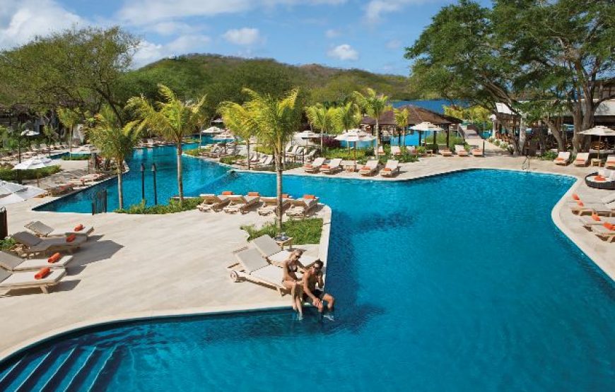 Dreams Las Mareas Resort is a vibrant beach getaway for couples, families and singles to enjoy an escape in luxury. Located on an expansive palm-studded beach and surrounded by lush green mountains & jungles on Playa El Jobo in the Guanacaste region of Costa Rica, guests of all ages can enjoy an action–packed vacation with watersports and land activities or relax by our swimming pools while sunbathing or laying under a thatched palapa. Continue the fun into the evenings with live nightly entertainment, outdoor bars and lounges, and so much more.