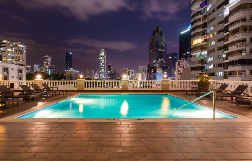 On the edge of the Bay of Panama overlooking the old and new quarters of the city, we’re bounded by charming restaurants and vibrant nightlife, all within a few minutes to the financial center and corporate offices.Our design is jaw-dropping. A double high ceiling lobby features an overturned glass pyramid reflecting vibrant colors, while a black granite lobby blends with golden accents, and a prominent 46 feet high atrium featuring lively glass.